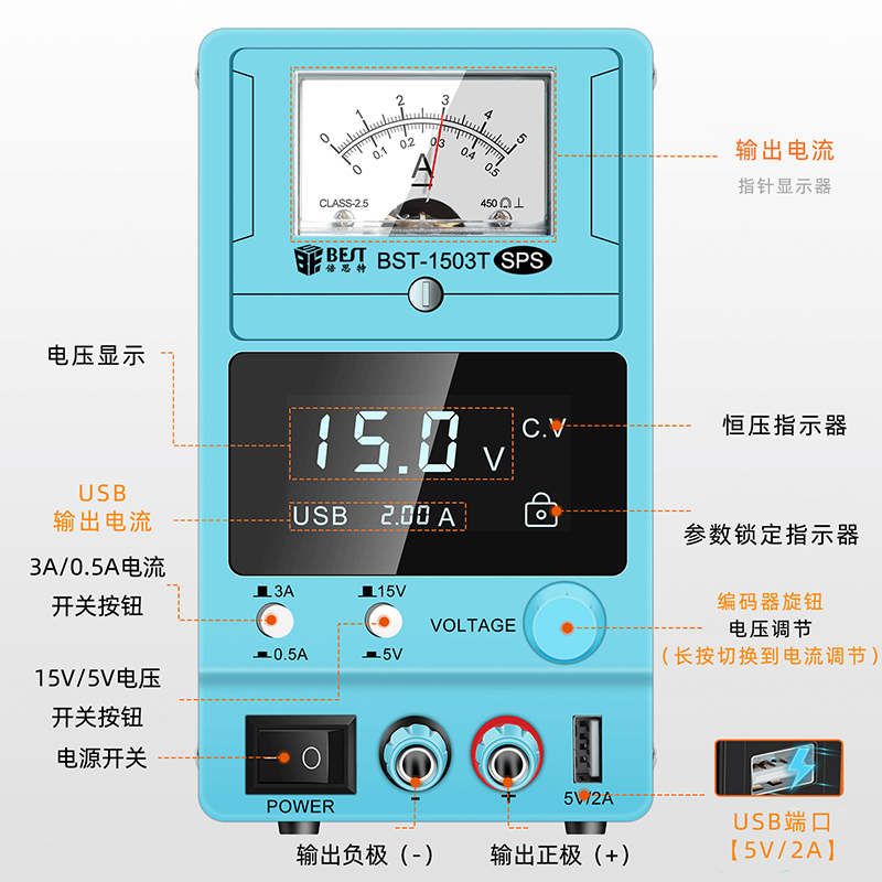 BST-1503T SPS 線性直流穩(wěn)壓電源 固測可調(diào)直流穩(wěn)壓電源15V/3A筆記本電腦手機維修電源
