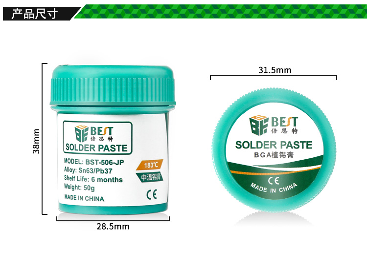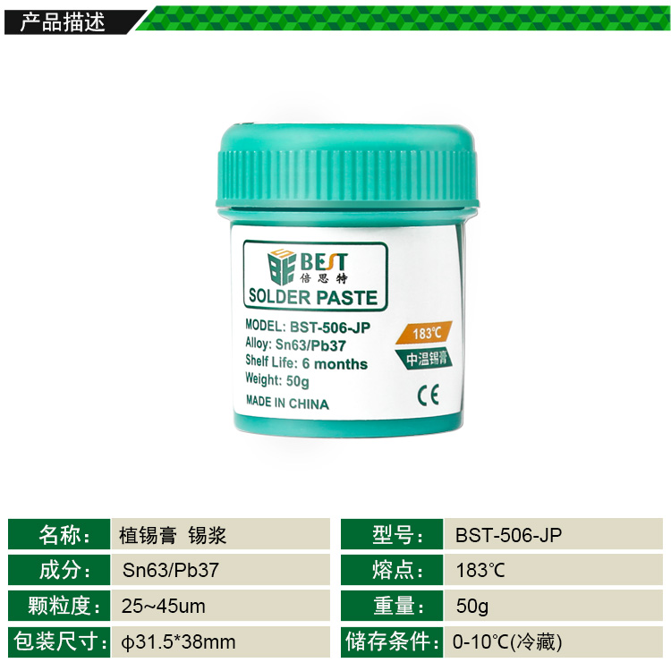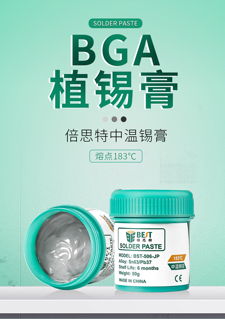 返回當(dāng)前位置: 首頁(yè) / 產(chǎn)品中心 / BST-506-JP 中溫錫漿 BGA植錫膏 Sn63/Pb37 50g