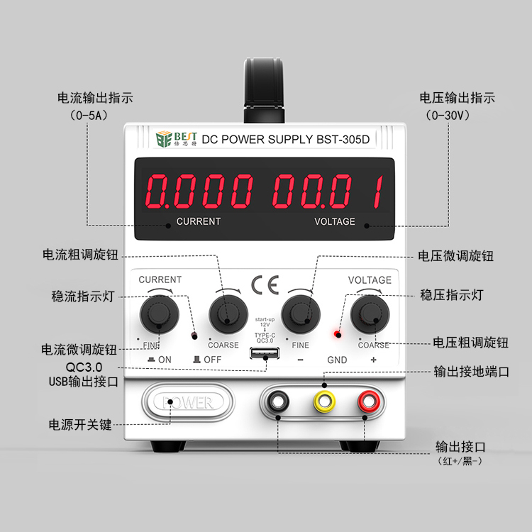 返回當(dāng)前位置: 首頁(yè) / 產(chǎn)品中心 / BST-305D 可調(diào)直流穩(wěn)壓維修電源 30V/5A 數(shù)顯電源表手機(jī)維修4位半高精度電流表 帶USB輸出接口