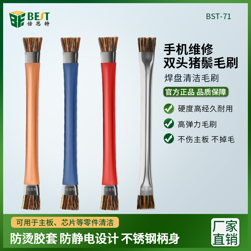 BST-71 雙頭維修硬毛刷 手機主板IC焊盤清潔除塵不脫毛防靜電豬鬃毛刷子