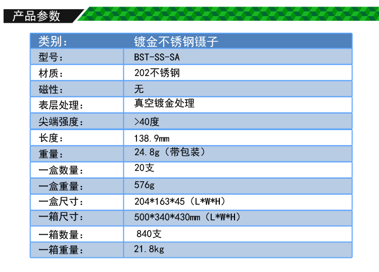 ? 產(chǎn)品名稱: 金鋼鑷子? 產(chǎn)品型號: BST-SS-SA? 產(chǎn)品類別: 鑷子系列