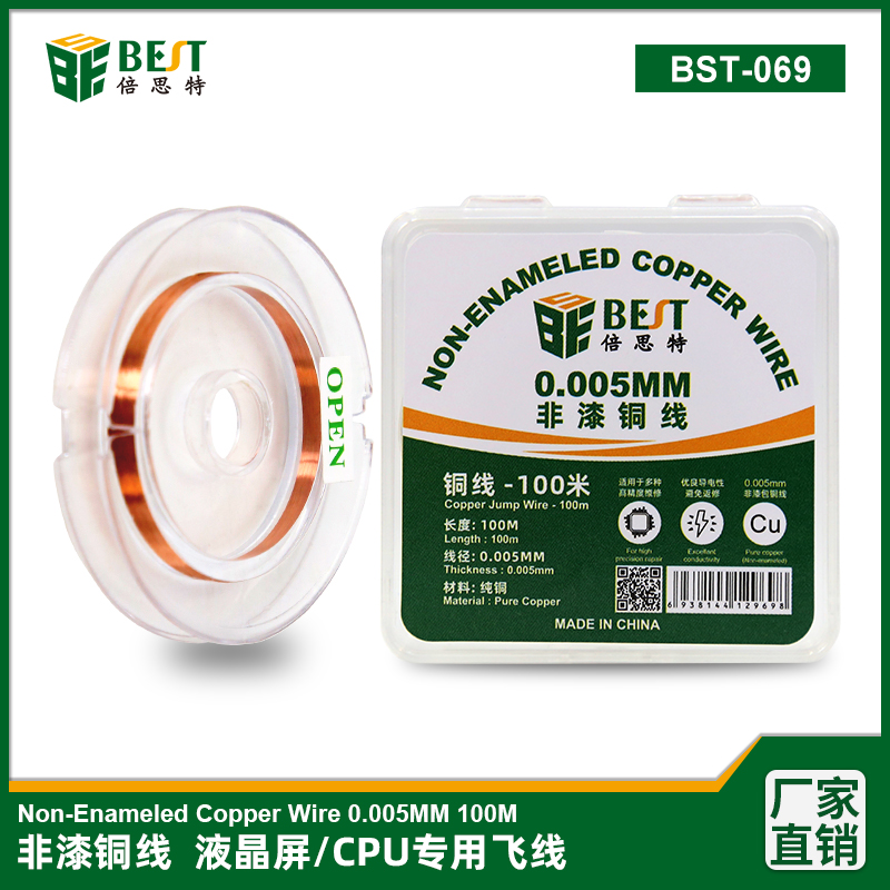 返回當(dāng)前位置: 首頁(yè) / 產(chǎn)品中心 / BST-069 非漆銅線 0.005mm 液晶屏修復(fù)CPU內(nèi)部飛線專用 手機(jī)維修主板焊盤掉點(diǎn)CPU補(bǔ)點(diǎn)0.005mm非漆包銅線