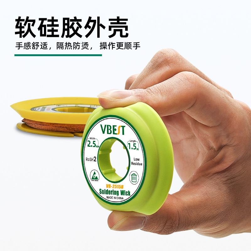VB-1515B/2015B/2515B 收納吸錫線 非鹵素低殘渣免清洗吸錫帶 純銅絲精密編織 收納型軟硅膠外殼