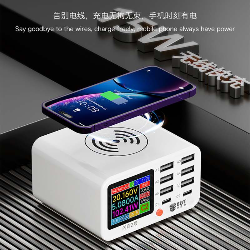 返回當(dāng)前位置: 首頁 / 產(chǎn)品中心 / BST-S2 閃霸二號 多功能8口可視化USB充電器 極速快充 無線快充 檢測維修一體數(shù)顯充電器