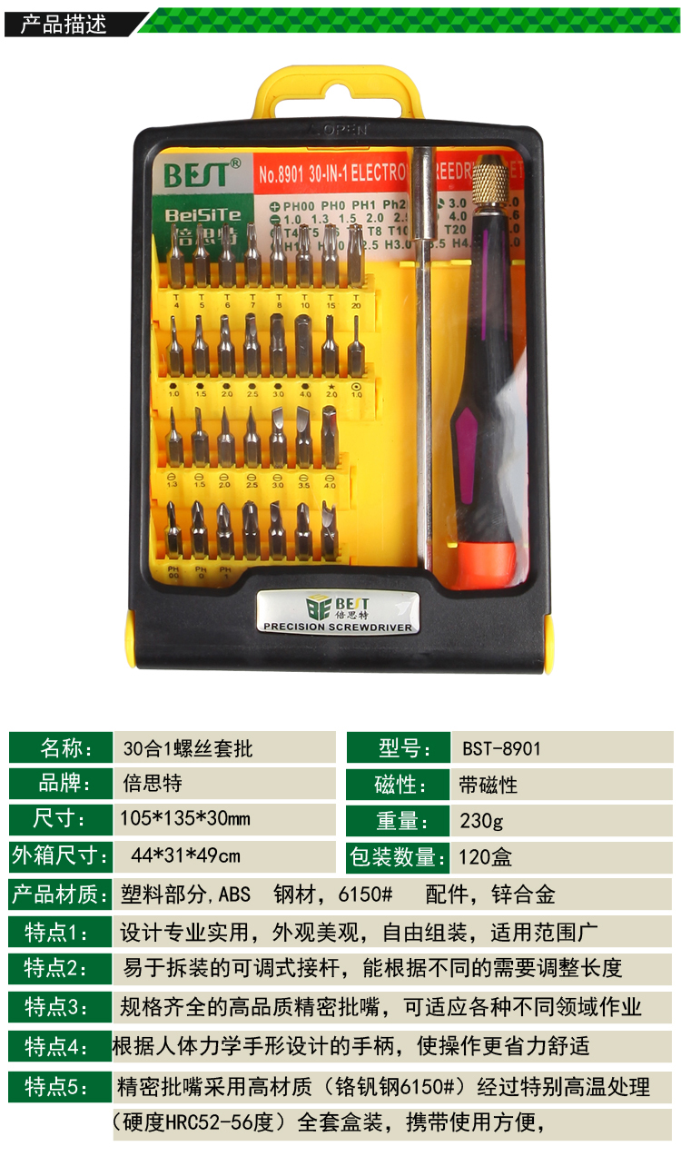 返回當(dāng)前位置: 首頁 / 產(chǎn)品中心 / BST-8901 螺絲套批 螺絲刀套裝30合1 專用電腦手機(jī)電子電訊維修工具