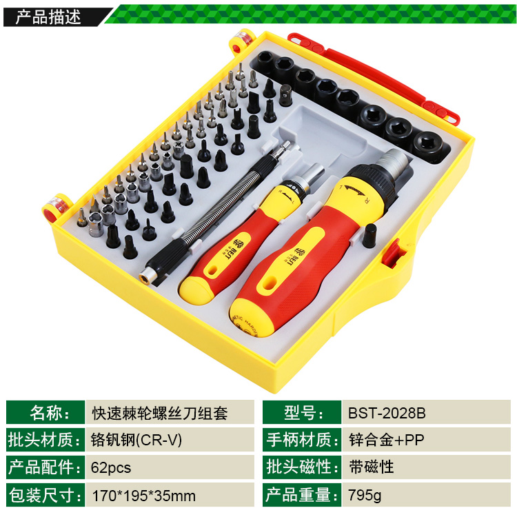 返回當(dāng)前位置: 首頁 / 產(chǎn)品中心 / BST-2028B 62件套 快速棘輪螺絲刀組套