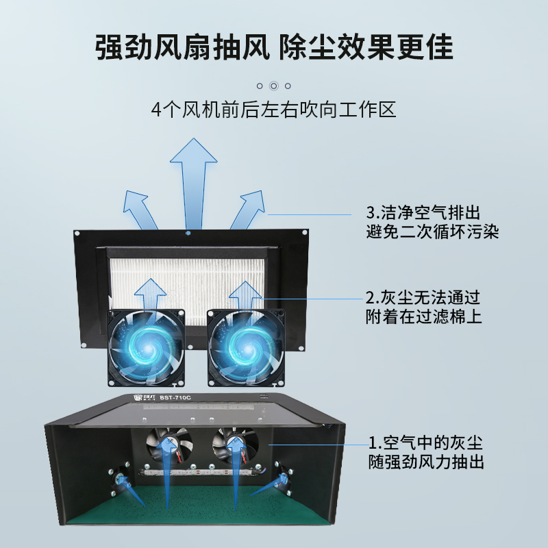 返回當前位置: 首頁 / 產品中心 / BST-710C 無塵工作臺 貼膜除塵工作臺 UV燈固化抽風防塵操作臺
