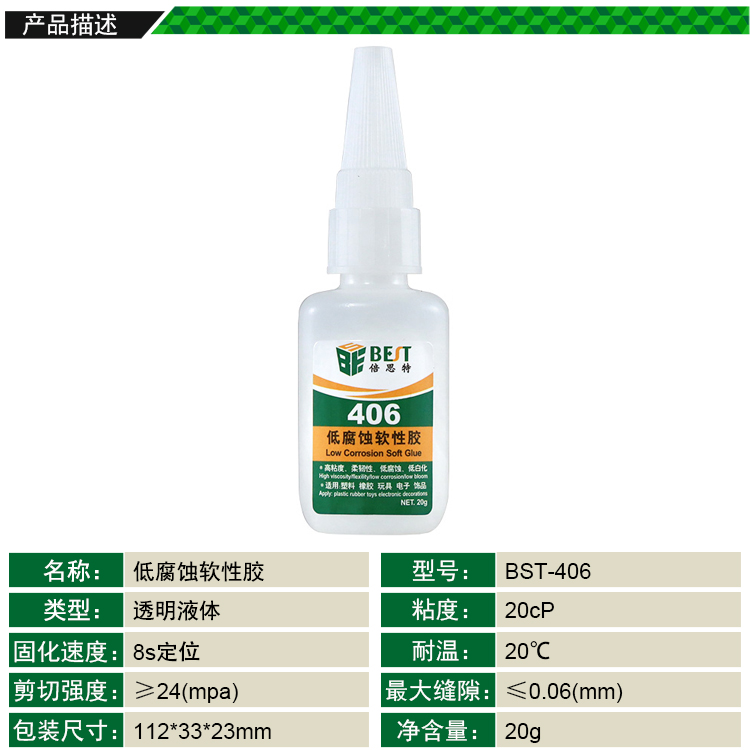 返回當(dāng)前位置: 首頁(yè) / 產(chǎn)品中心 / BST-406 低腐蝕軟性膠 瞬間膠