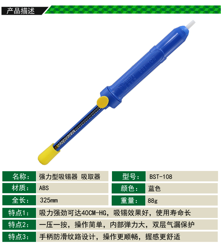 返回當前位置: 首頁 / 產(chǎn)品中心 / BST-108 吸取器 吸錫器(藍)