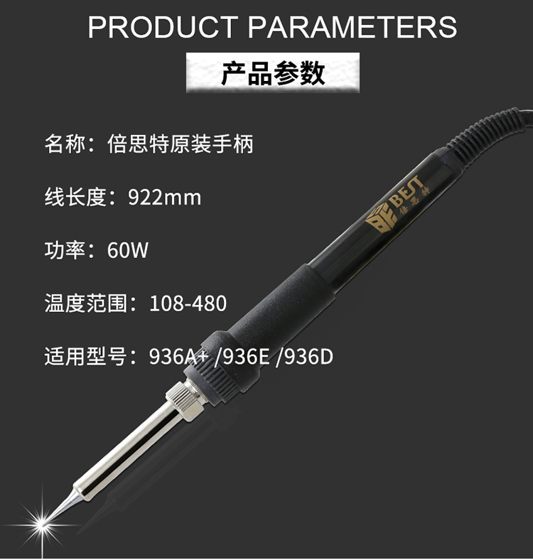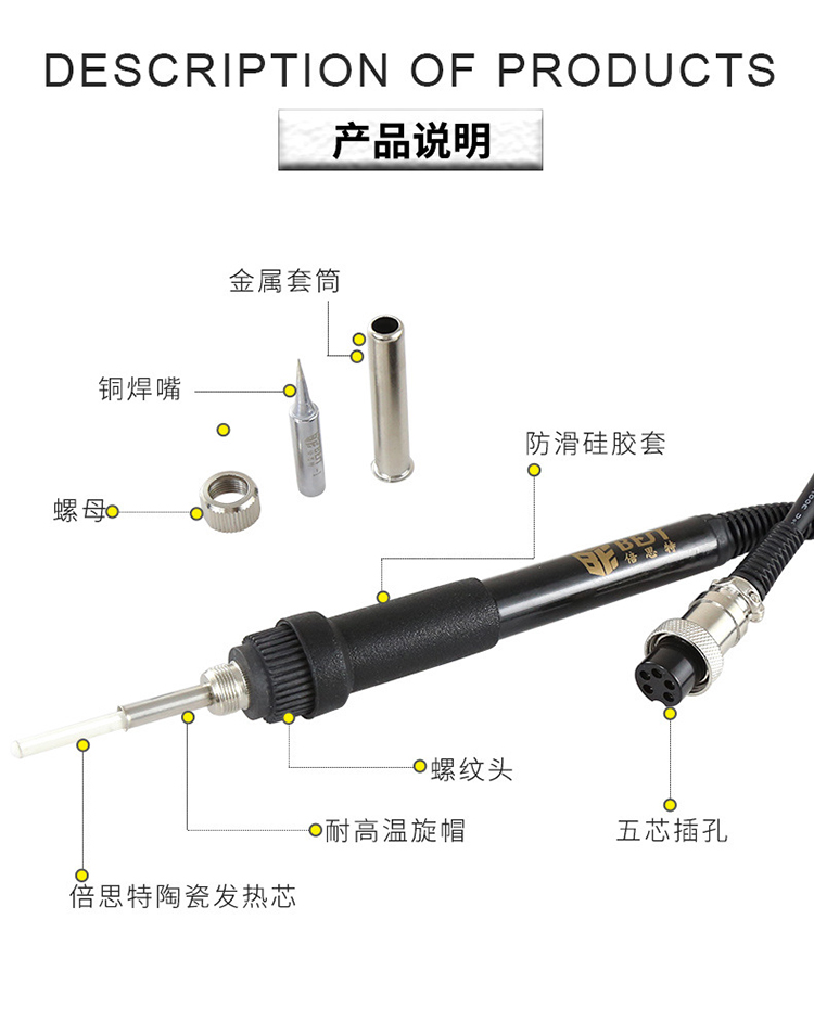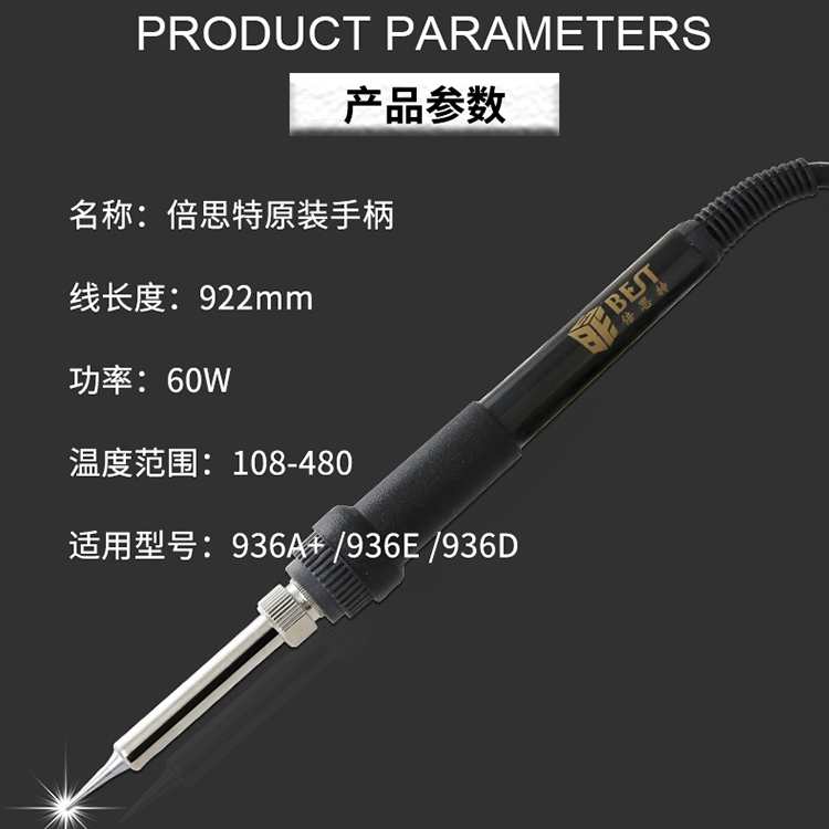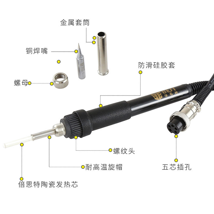 返回當(dāng)前位置: 首頁(yè) / 產(chǎn)品中心 / 倍思特恒溫焊臺(tái)936手柄 適用936A+ 936B 936D 936E 939 939D多款防靜電60W內(nèi)熱式手柄