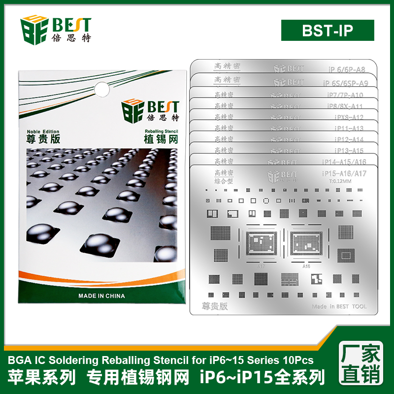 返回當前位置: 首頁 / 產(chǎn)品中心 / BST-IP(A8-A17)蘋果CPU系列專用植錫網(wǎng) 適用于iP6~15植錫鋼網(wǎng) 多用植錫方孔定位鋼網(wǎng) 植錫卡套裝10pcs