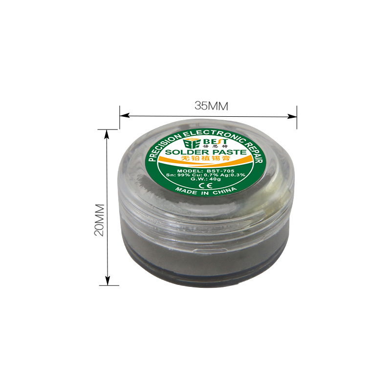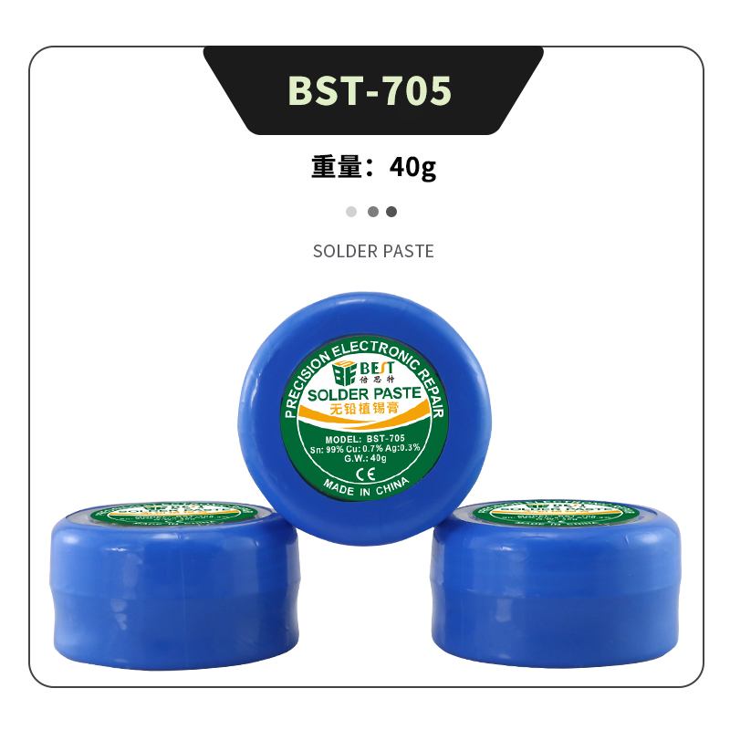 返回當(dāng)前位置: 首頁 / 產(chǎn)品中心 / BST-705 無鉛錫漿 高溫錫漿 焊錫膏 BGA植錫膏 Sn99/Cu0.7/Ag0.3 40g