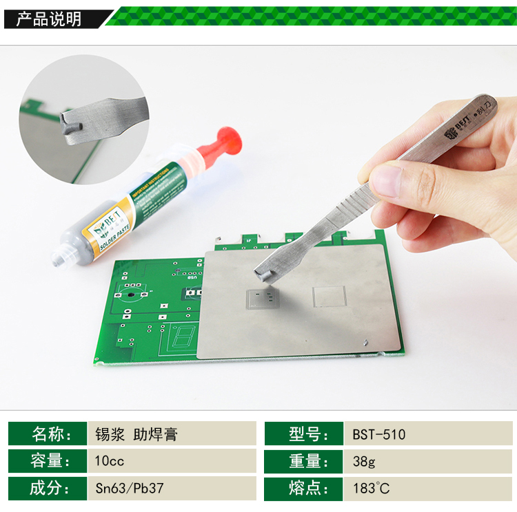 返回當(dāng)前位置: 首頁(yè) / 產(chǎn)品中心 / BST-510 針筒式錫漿 中溫錫膏 焊錫膏 Sn63/Pb37 10cc