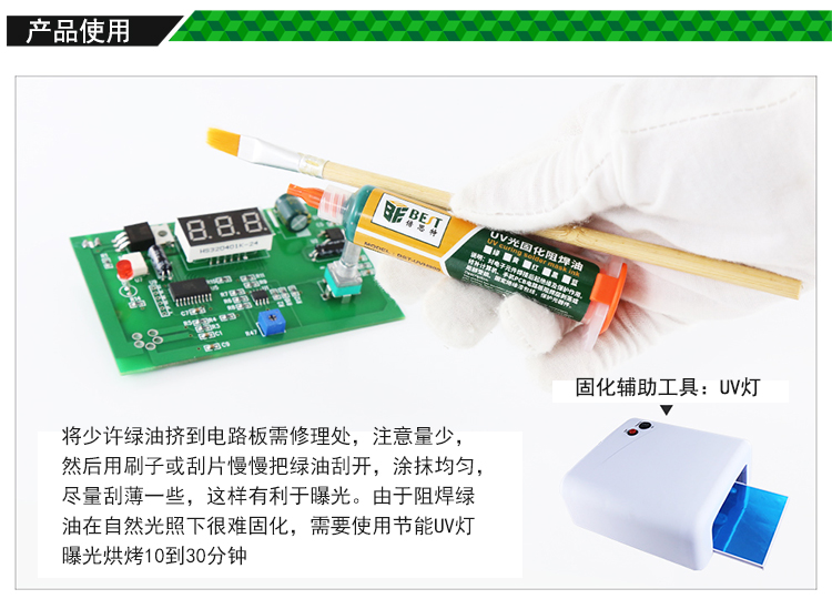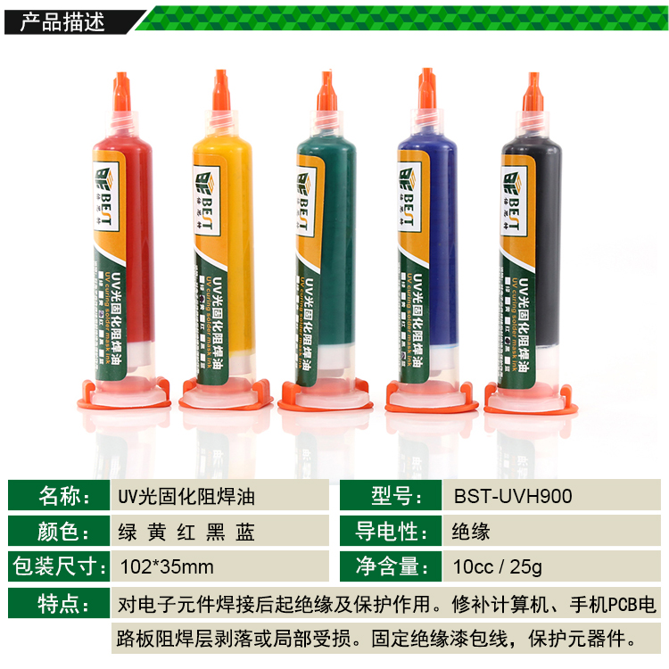返回當(dāng)前位置: 首頁(yè) / 產(chǎn)品中心 / BST-UVH900 UV光固化阻焊油 綠油 紅油 黃油 藍(lán)油 黑油 UV固化紫外光阻焊油PCB板綠油黃油專(zhuān)用保護(hù)漆25g/10cc
