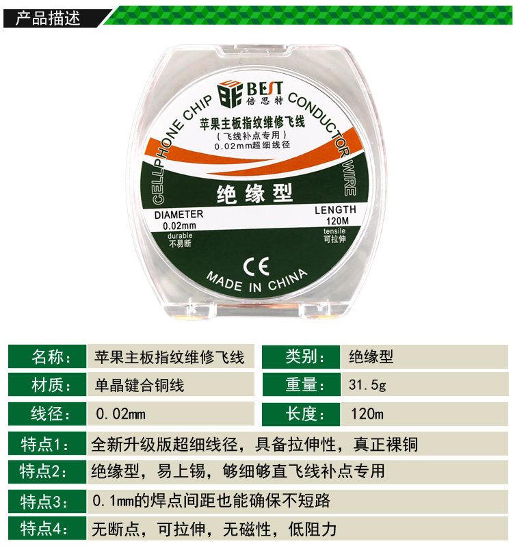 返回當(dāng)前位置: 首頁 / 產(chǎn)品中心 / 蘋果主板指紋維修飛線 0.02mm超細(xì)線徑 飛線補點專用 120m