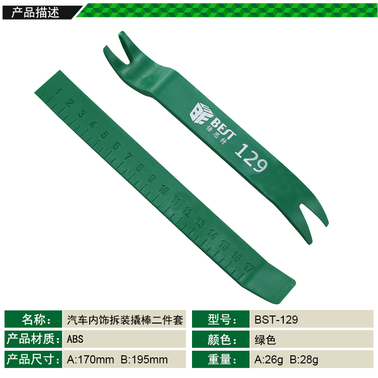 返回當(dāng)前位置: 首頁 / 產(chǎn)品中心 / BST-129 汽車內(nèi)飾拆裝工具二件套 塑料大撬棒