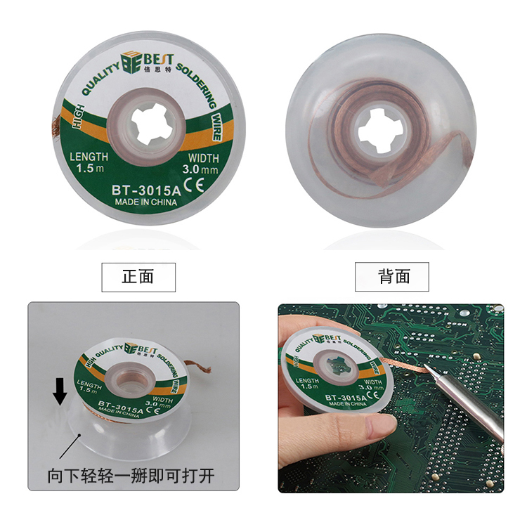 返回當(dāng)前位置: 首頁(yè) / 產(chǎn)品中心 / BST-3015A 吸錫線 非鹵素低殘?jiān)馇逑次a帶 清理焊盤必備