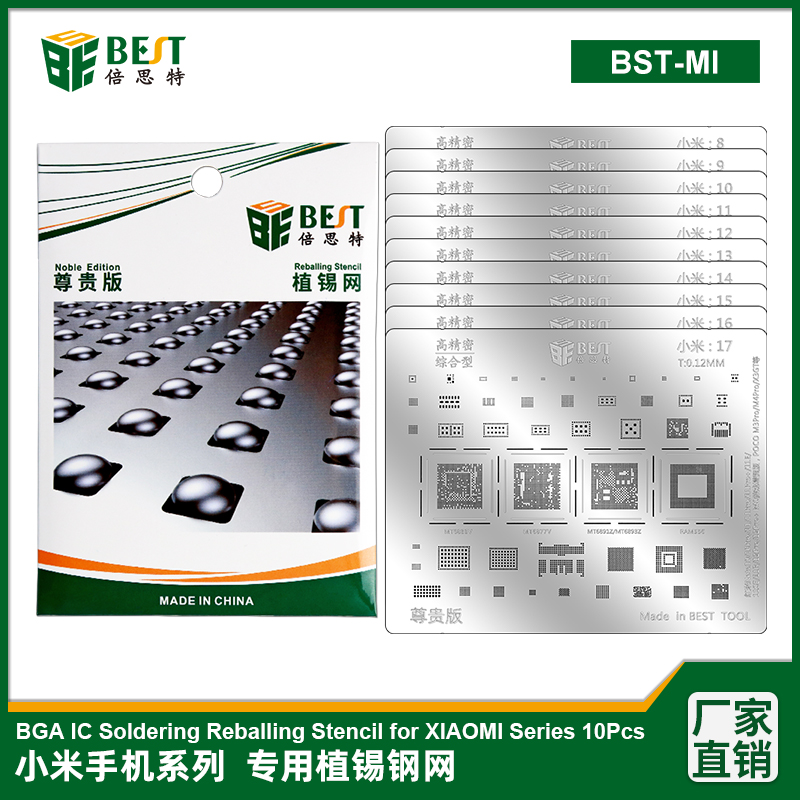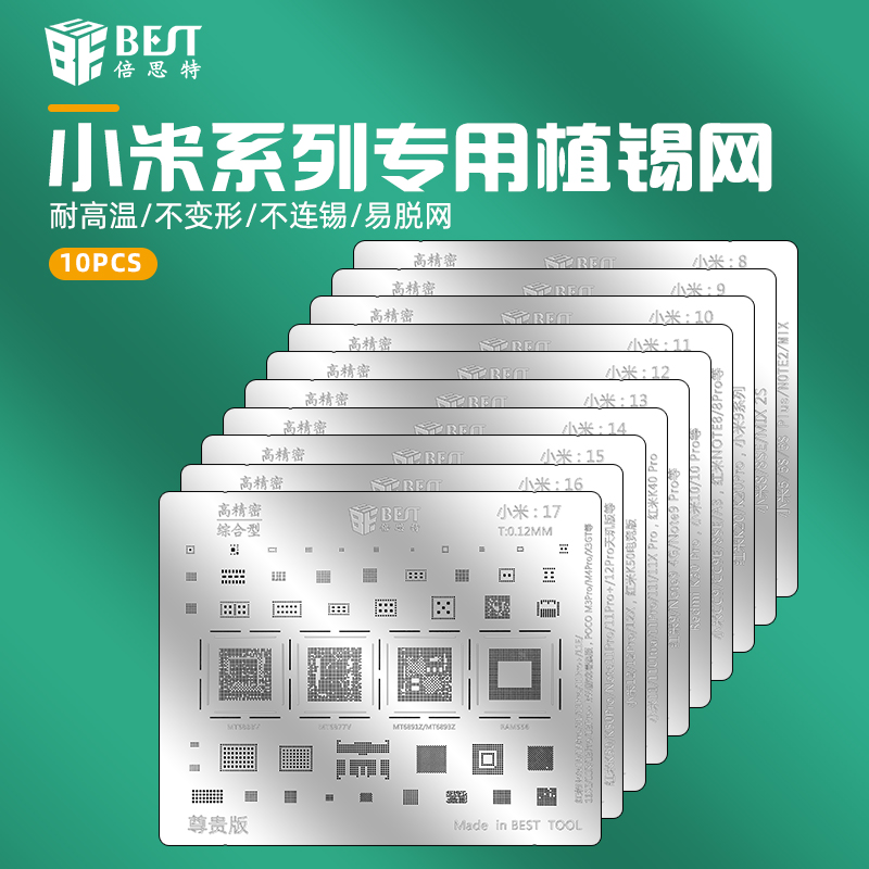 BST-MI 小米/紅米系列專用植錫網(wǎng) 多用植錫方孔定位鋼網(wǎng) 植錫卡套裝10pcs