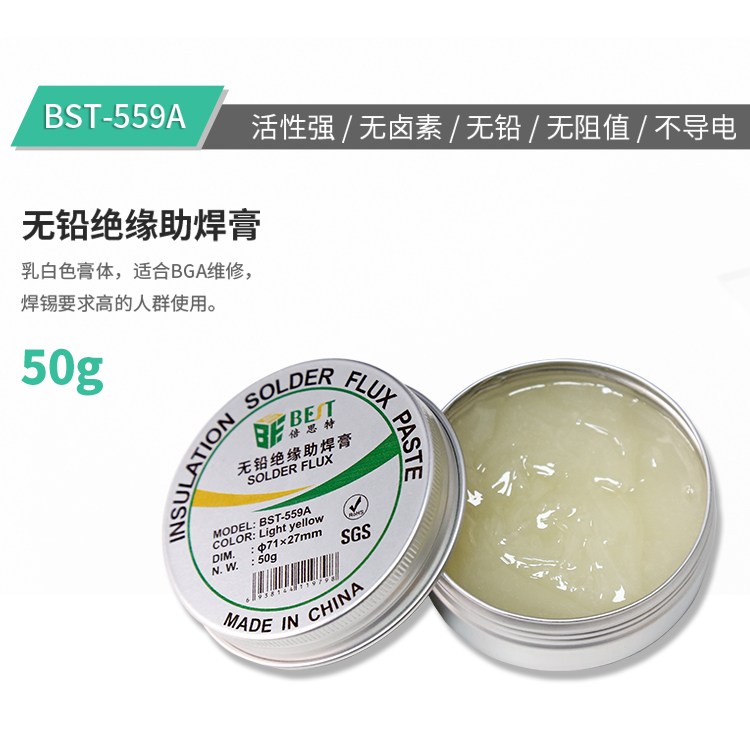 返回當(dāng)前位置: 首頁 / 產(chǎn)品中心 / BST-559A 無鉛絕緣助焊膏 BGA助焊膏 免洗維修松香 無鉛無鹵助焊劑焊油 50g