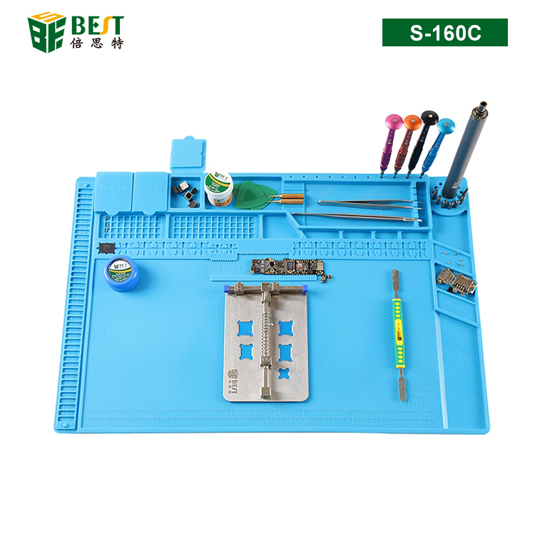 BST-S-160C 耐高溫硅膠墊 工作臺墊 帶磁性收納區(qū) 螺絲記憶定位區(qū) 零件收納盒 CPU卡槽 隔熱墊