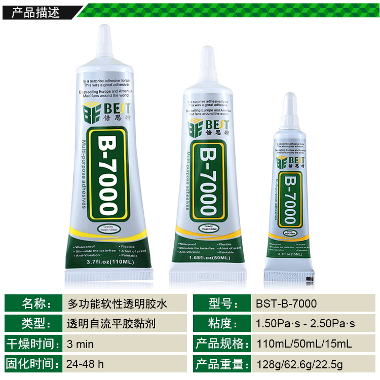 BST-B-7000 多功能軟性透明膠水 手機(jī)屏幕修復(fù)膠水 維修專用邊框密封膠(15ML/50ML/110ML)