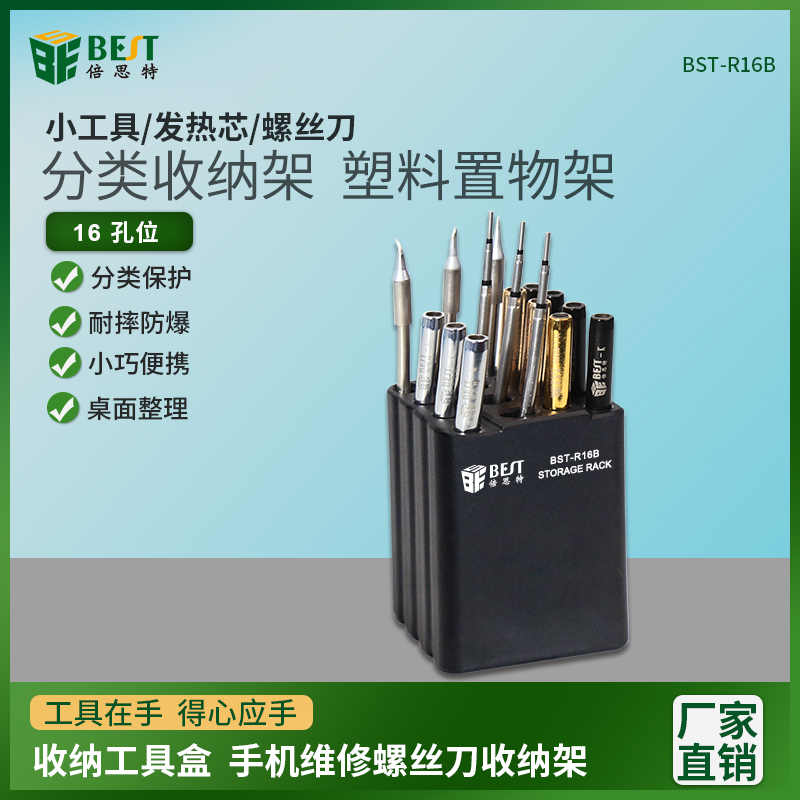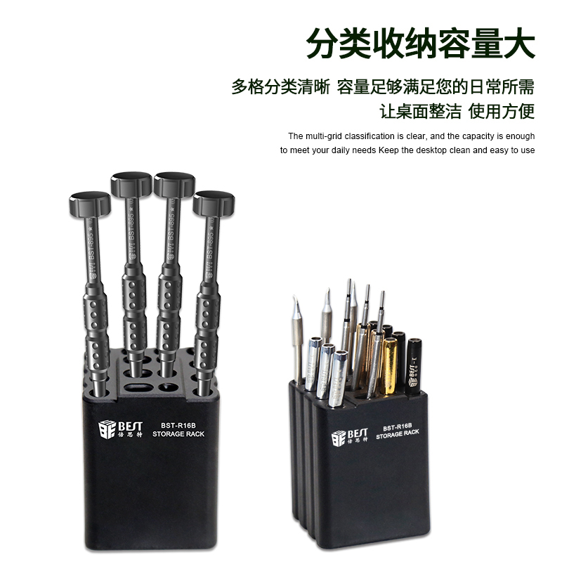返回當(dāng)前位置: 首頁 / 產(chǎn)品中心 / BST-R16B 小工具發(fā)熱芯螺絲刀分類收納架 16個(gè)孔位分類擺放 拿取方便 耐高溫阻燃防摔防爆 烙鐵頭收納盒 塑料置物架