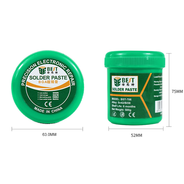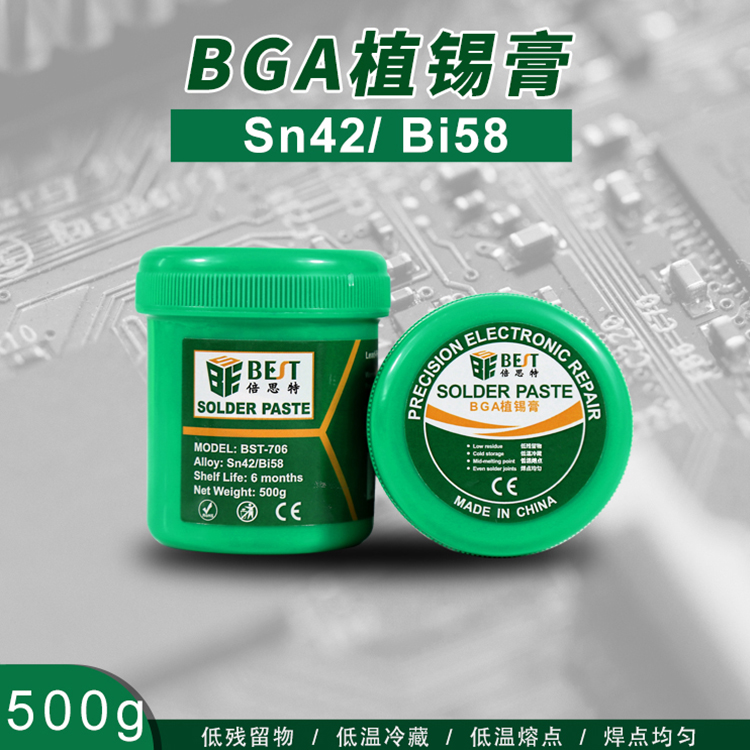 返回當(dāng)前位置: 首頁(yè) / 產(chǎn)品中心 / BST-706 無(wú)鉛錫漿 低溫?zé)o鉛錫膏 焊錫膏 BGA植錫膏 Sn42/Bi58 500g
