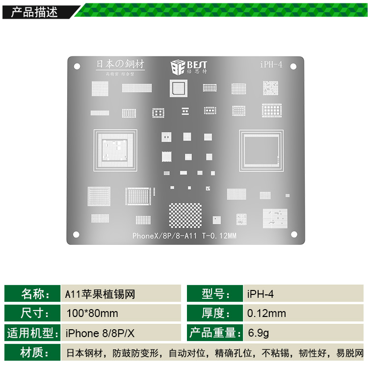 產(chǎn)品名稱: iPhone X/8/8P-A11 BGA植錫網(wǎng)