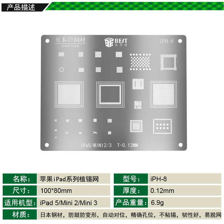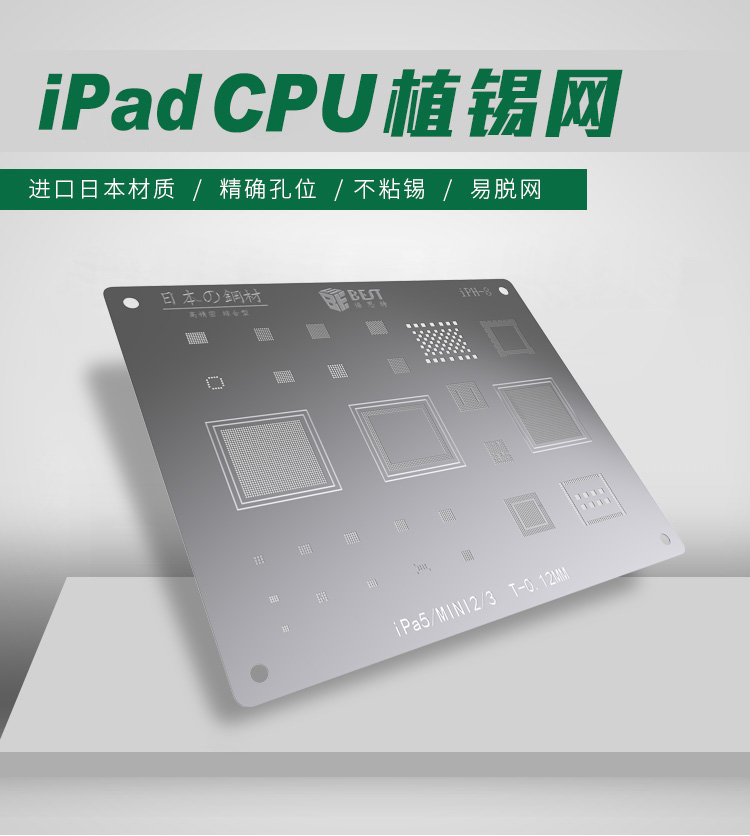 產(chǎn)品名稱(chēng): iPad 5/Mini2/3專(zhuān)用植錫網(wǎng)