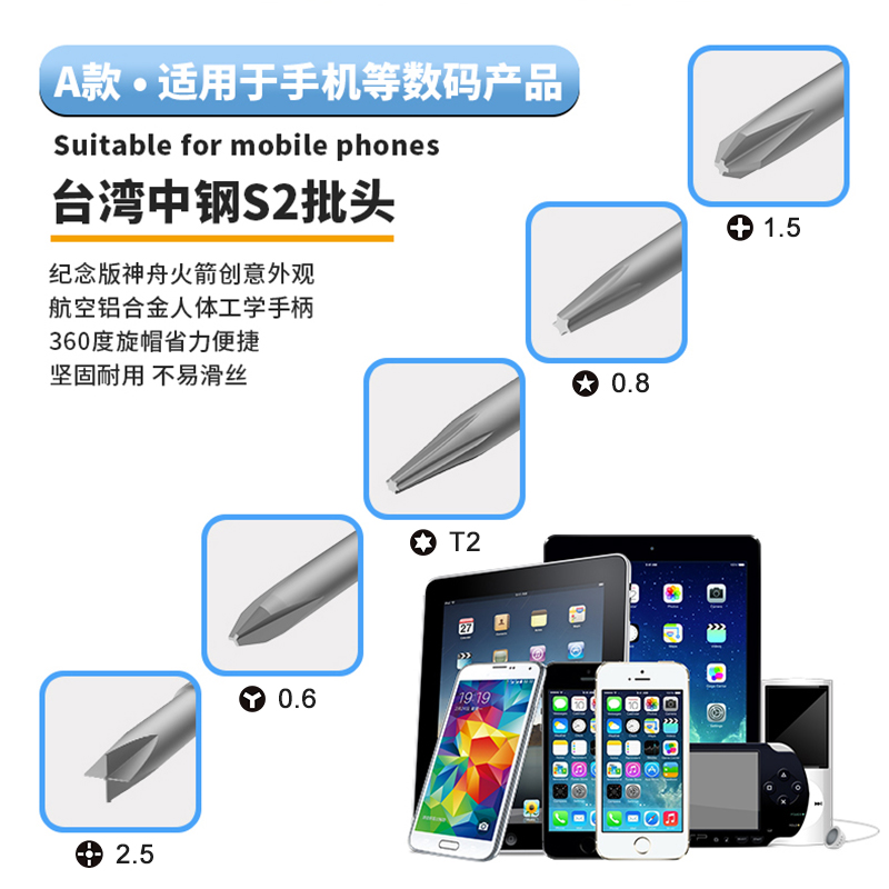 返回當(dāng)前位置: 首頁 / 產(chǎn)品中心 / BST-9905S 精密螺絲刀套裝五支裝 S2螺絲刀頭 神舟火箭創(chuàng)意外觀螺絲套批5pcs