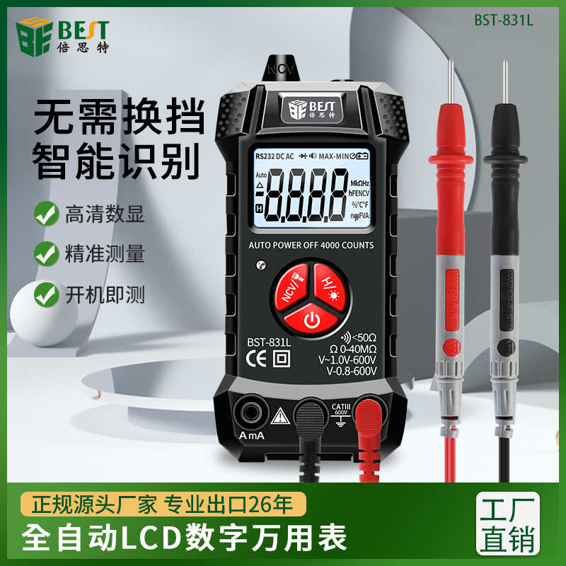 返回當(dāng)前位置: 首頁 / 產(chǎn)品中心 / BST-831L 全自動萬用表無需換擋識別數(shù)字傻瓜式萬能表 小型便攜式高精度智能萬用表 家用迷你電工儀表