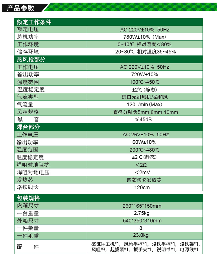 ? 產(chǎn)品名稱: 二合一雙數(shù)顯智能無鉛螺旋式熱風(fēng)槍+焊臺(tái)