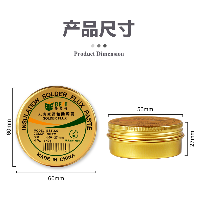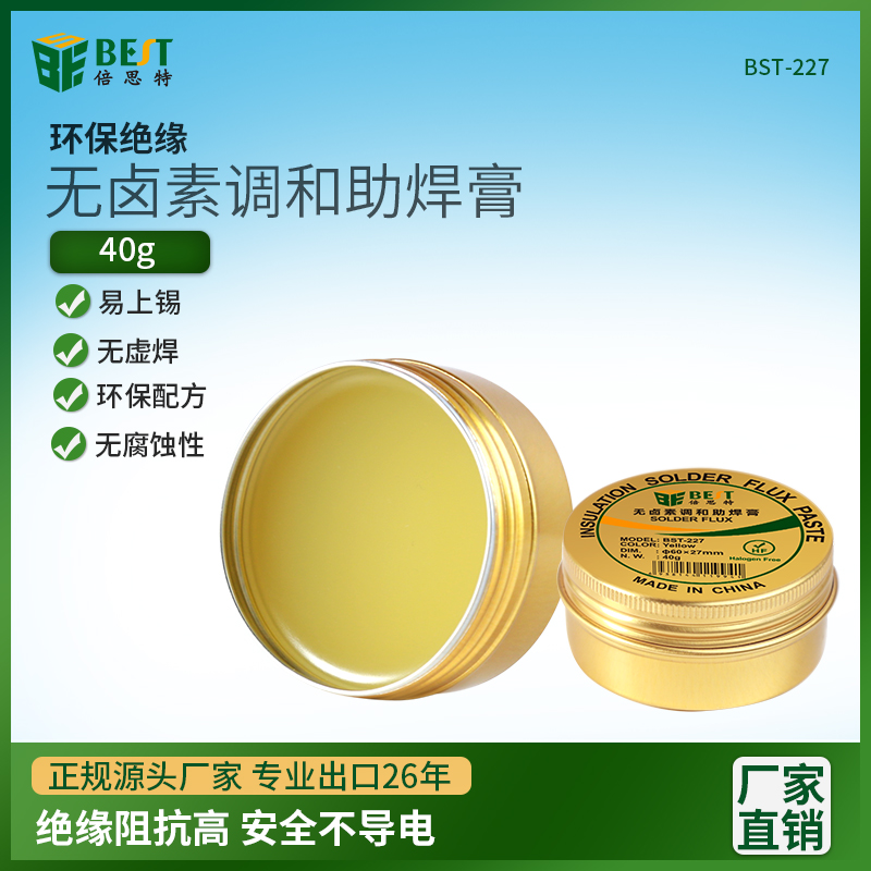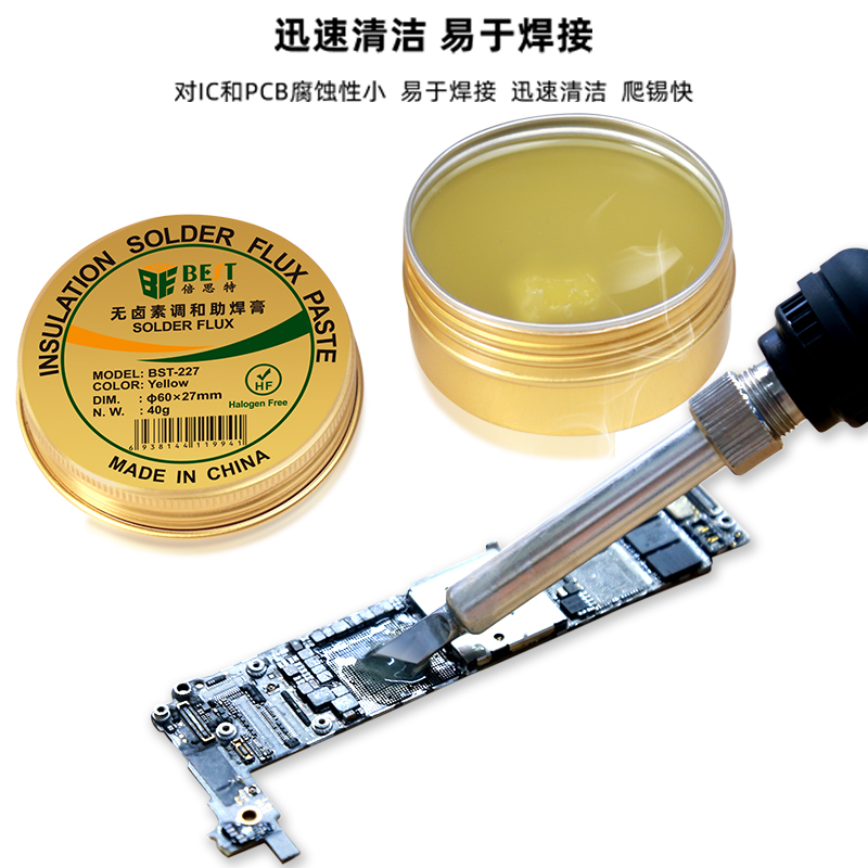 返回當(dāng)前位置: 首頁 / 產(chǎn)品中心 / BST-227 無鹵素調(diào)和助焊膏40g 環(huán)保高合成無鹵素免洗助焊膏 松香助焊劑SMT電子制作鋁盒調(diào)和助焊油